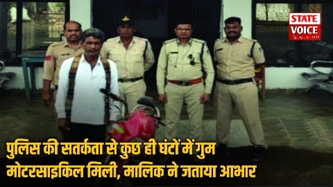 पुलिस की सतर्कता से कुछ ही घंटों में गुम मोटरसाइकिल मिली, मालिक ने जताया आभार