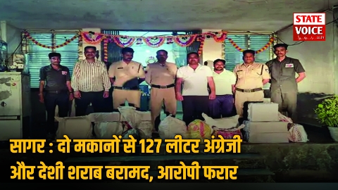 सागर पुलिस की बड़ी कार्रवाई: दो मकानों से 127 लीटर अंग्रेजी और देशी शराब बरामद, आरोपी फरार