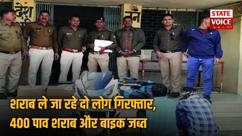 शराब ले जा रहे दो लोग गिरफ्तार, 400 पाव शराब और बाइक जब्त