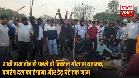 शादी समारोह से पहले दो क्विंटल गोमांस बरामद, बजरंग दल का हंगामा और डेढ़ घंटे तक जाम