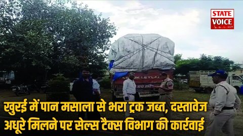 खुरई में पान मसाला से भरा ट्रक जब्त, दस्तावेज अधूरे मिलने पर सेल्स टैक्स विभाग की कार्रवाई
