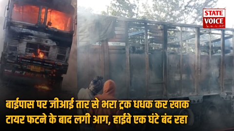 गुल्लक टायर फटते ही अनियंत्रित हुआ ट्रक, 200 मीटर खिसकने के बाद भड़की आग